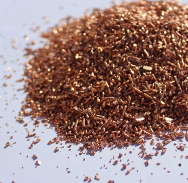 DESCRIPTION : grenailles de cuivre en provenance du broyage de cables avec une faible présence de cuivre étamé et/ ou de plomb libre. Les impuretés toutefois ne doivent pas dépasser 0.15% d'étain et 1% de plomb